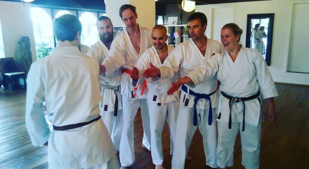 In der Karate-Ausbildung legen wir neben den klassischen technischen Anforderungen wie Grundschule, Formenlaufen und Partnerübung, besonderen Wert auf das Erlernen der Basis einer realistischen Selbstverteidigung: Selbstbewusstsein und Kraftübertragung.